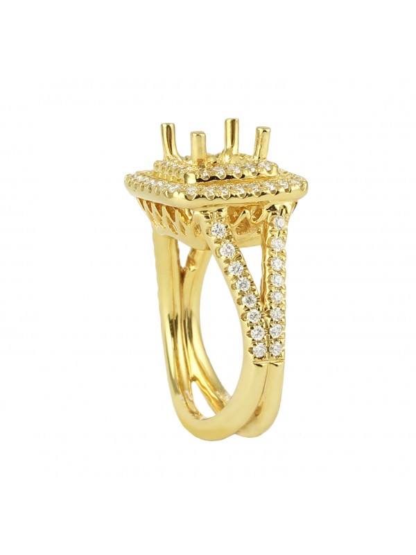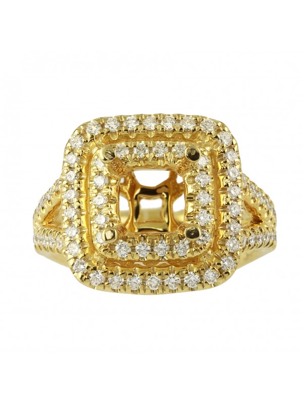 This Double Halo Diamond Engagement Mounting is constructed with 14K yellow gold in size 6.5.