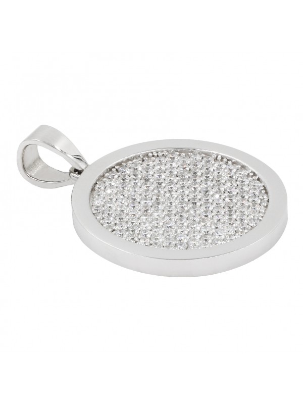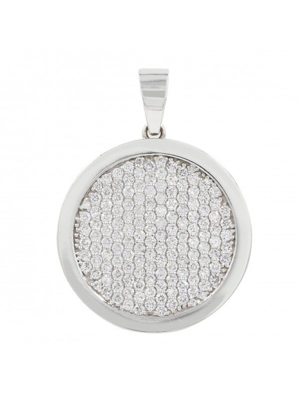 Elegant 1.86ct diamond encrusted flat round pendant in 14K white gold.