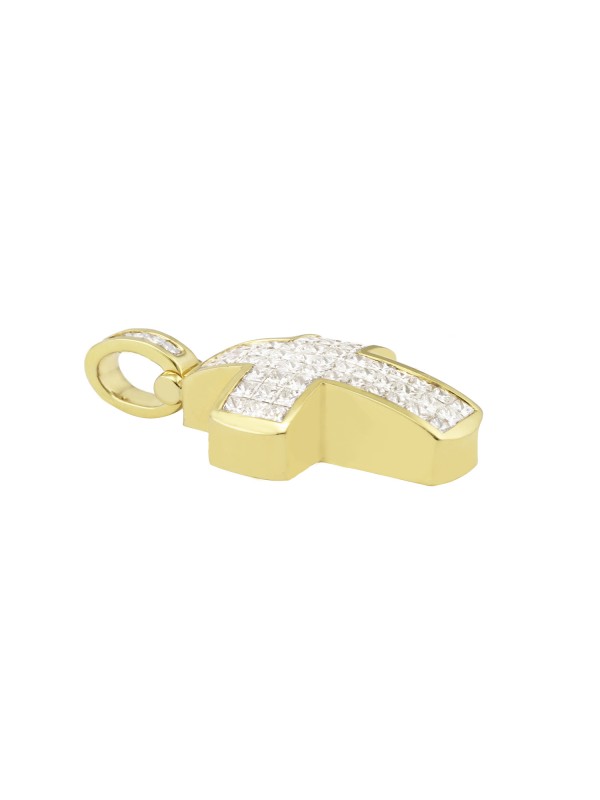 You are viewing a Invisible Set Diamond Cross Pendant. This beautiful pendant is constructed of solid 14kt. Yellow Gold. Featuring 58 Princess Cut diamonds in an invisible setting. The dimension of the cross is 40 x 22.23mm.