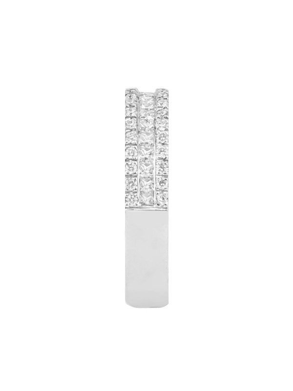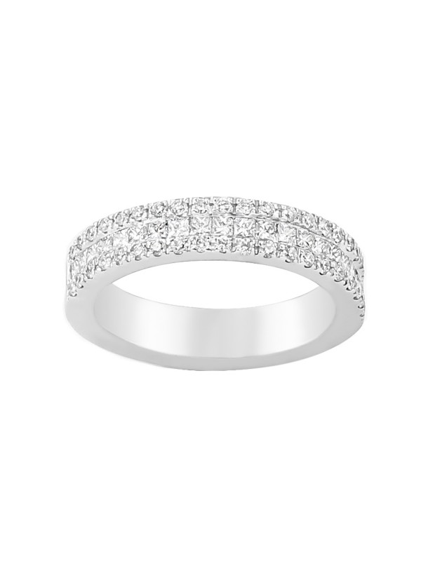This beautiful diamond ring has 50 diamonds that feature a center row of channel set, Princess Cut Diamonds.