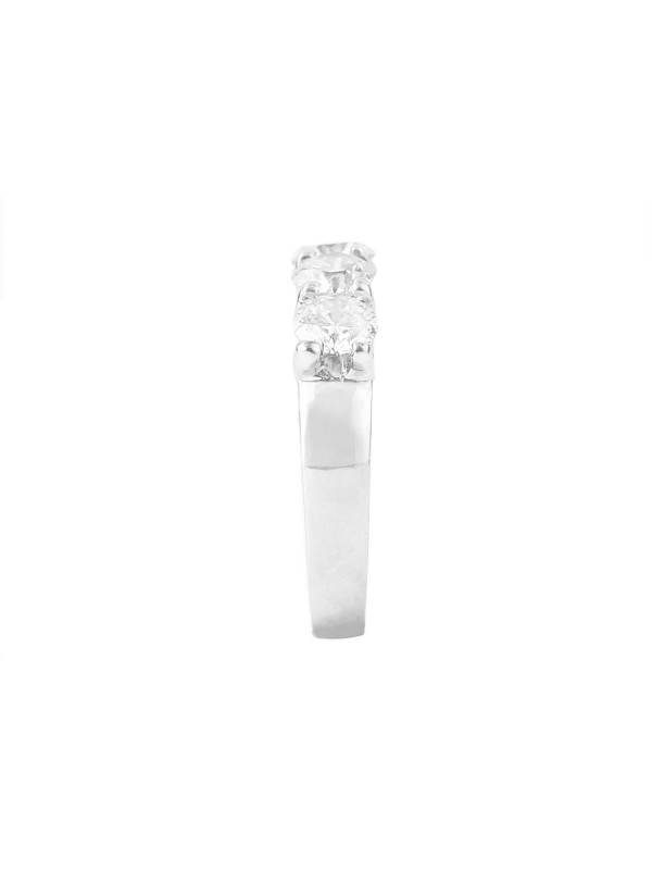 This band has 5 Round Cut diamonds in a shared prong setting.