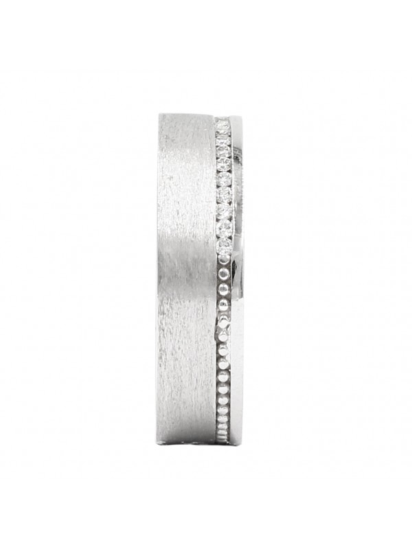 You are viewing a 14K White Gold Men's Diamond Ring in size 10.75. This ring features one side design with 0.41ct of round cut pave diamonds on half of the band, and is completed with round bead set the other half.