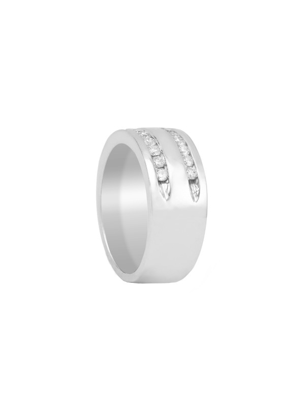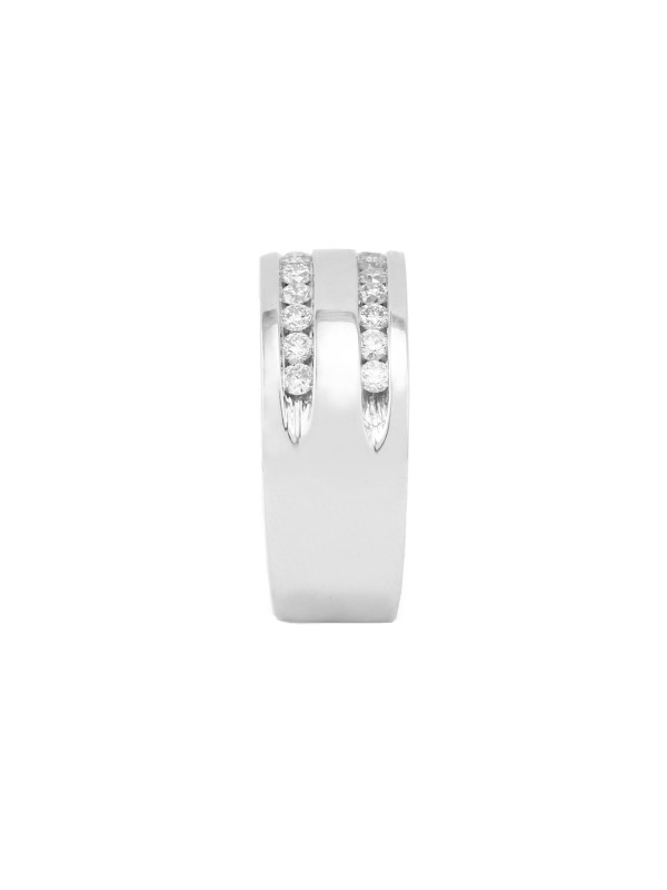 You are viewing a double row, channel set diamond ring made with 14K White Gold in size 9.25.