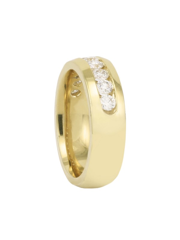 It has 9 Round Cut Diamonds in a channel setting down the center of the ring.