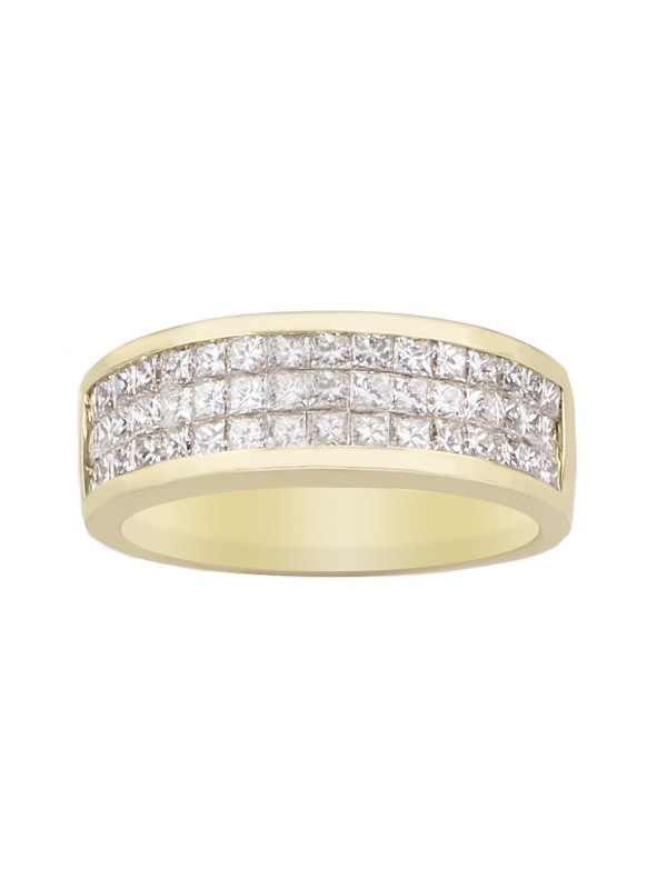 This high polished ring features 48 Princess Cut diamonds in an invisible setting.