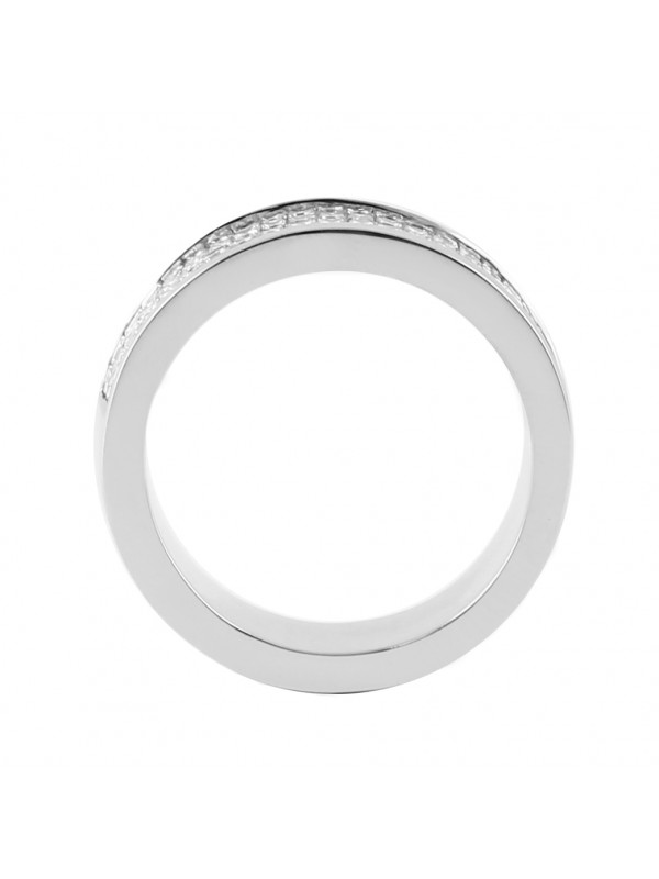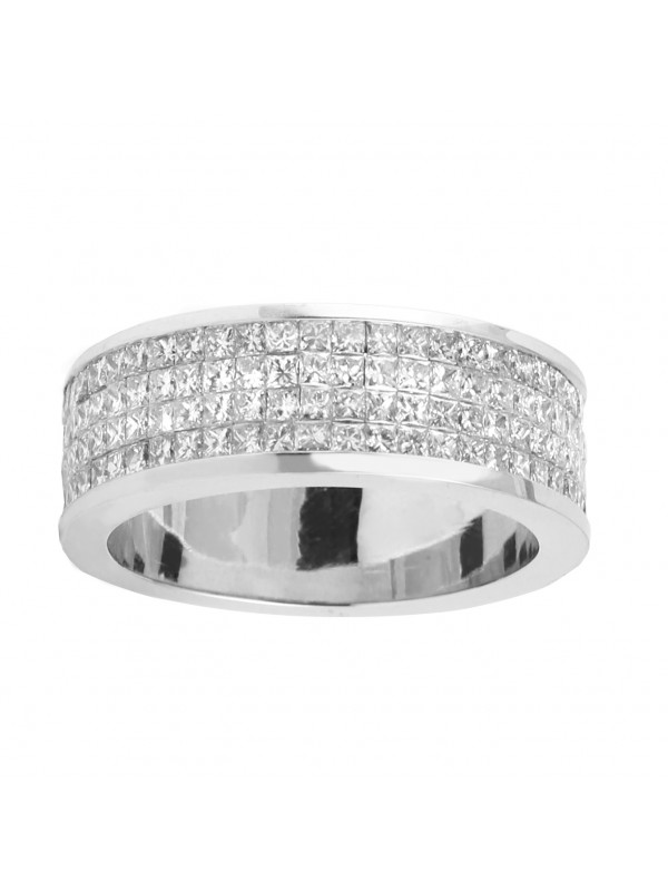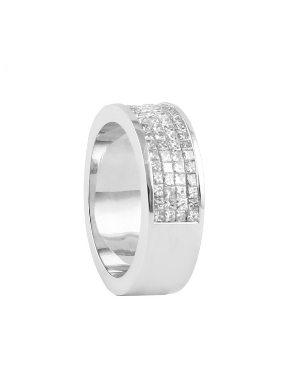 This beautiful ring is a 14K White Gold Men's Diamond Ring in size 9.5. This Diamond ring features 100 Princess cut Diamonds in an invisible setting.